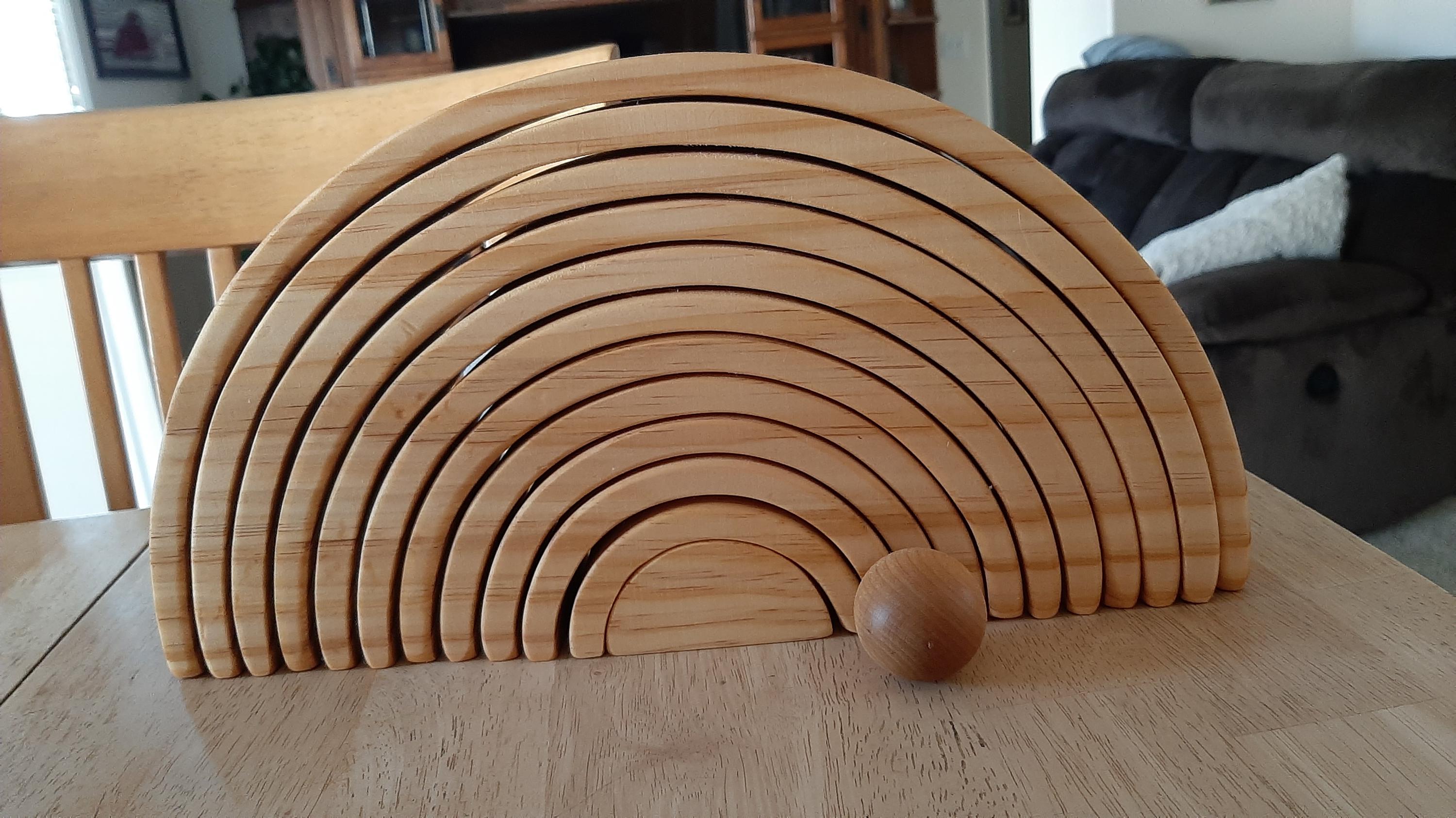 Absolutely love the Extra Large Wooden Rainbow. It surpassed all my expectations. Great communication, lightning fast shipping and so well made that I am sure it will outlast my nephew. Every edge was sanded to perfection and I love knowing that there is nothing in or on the product that could cause harm. Highly recommend this seller and will happily purchase from her again.