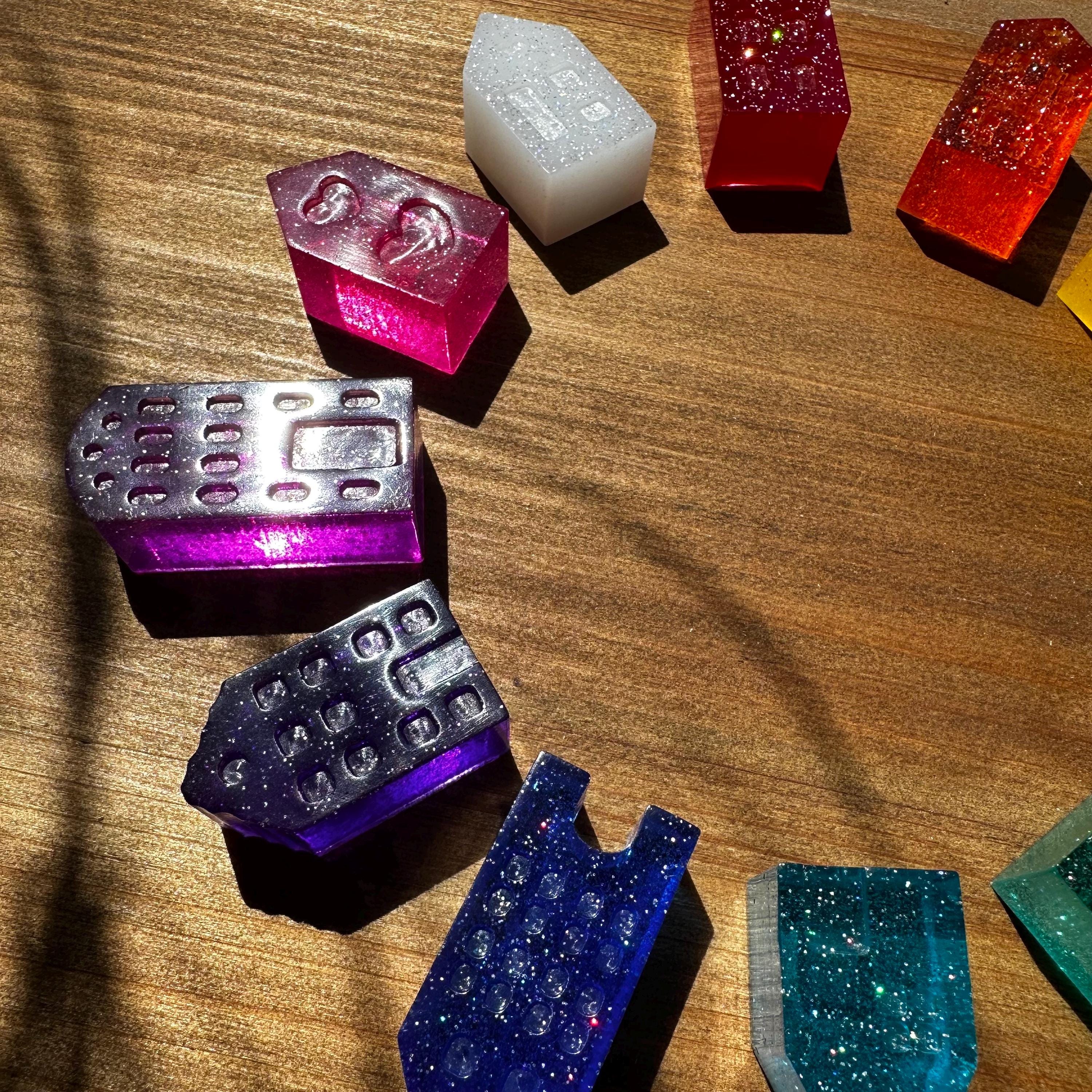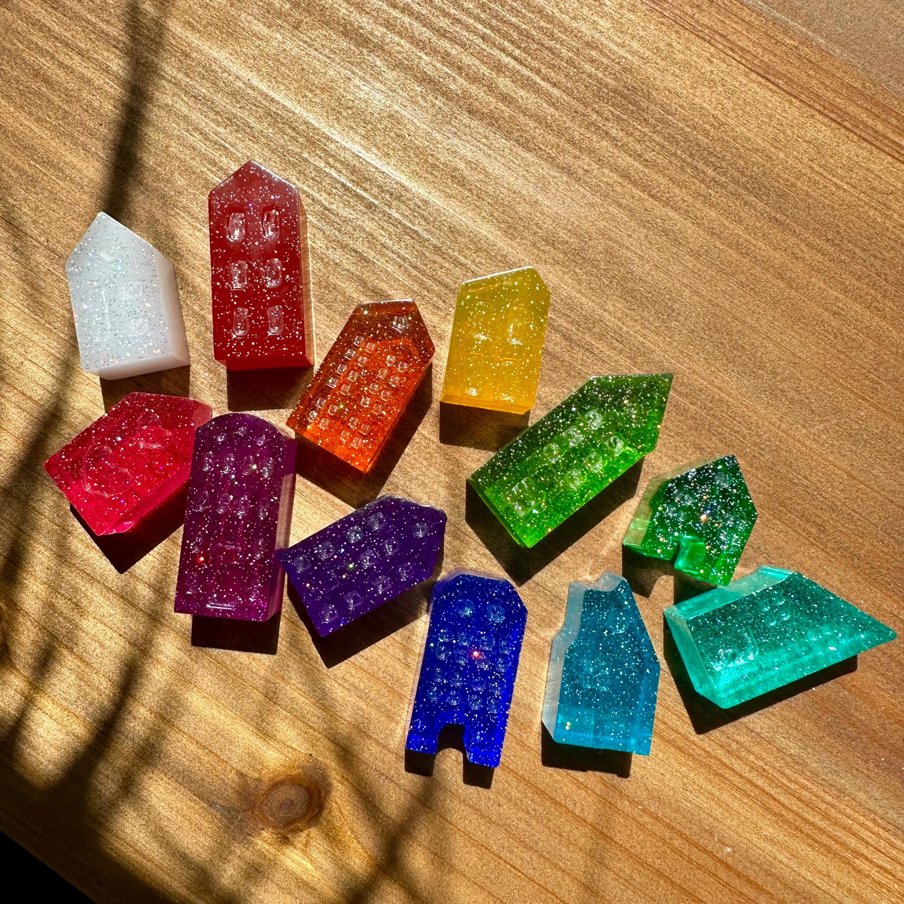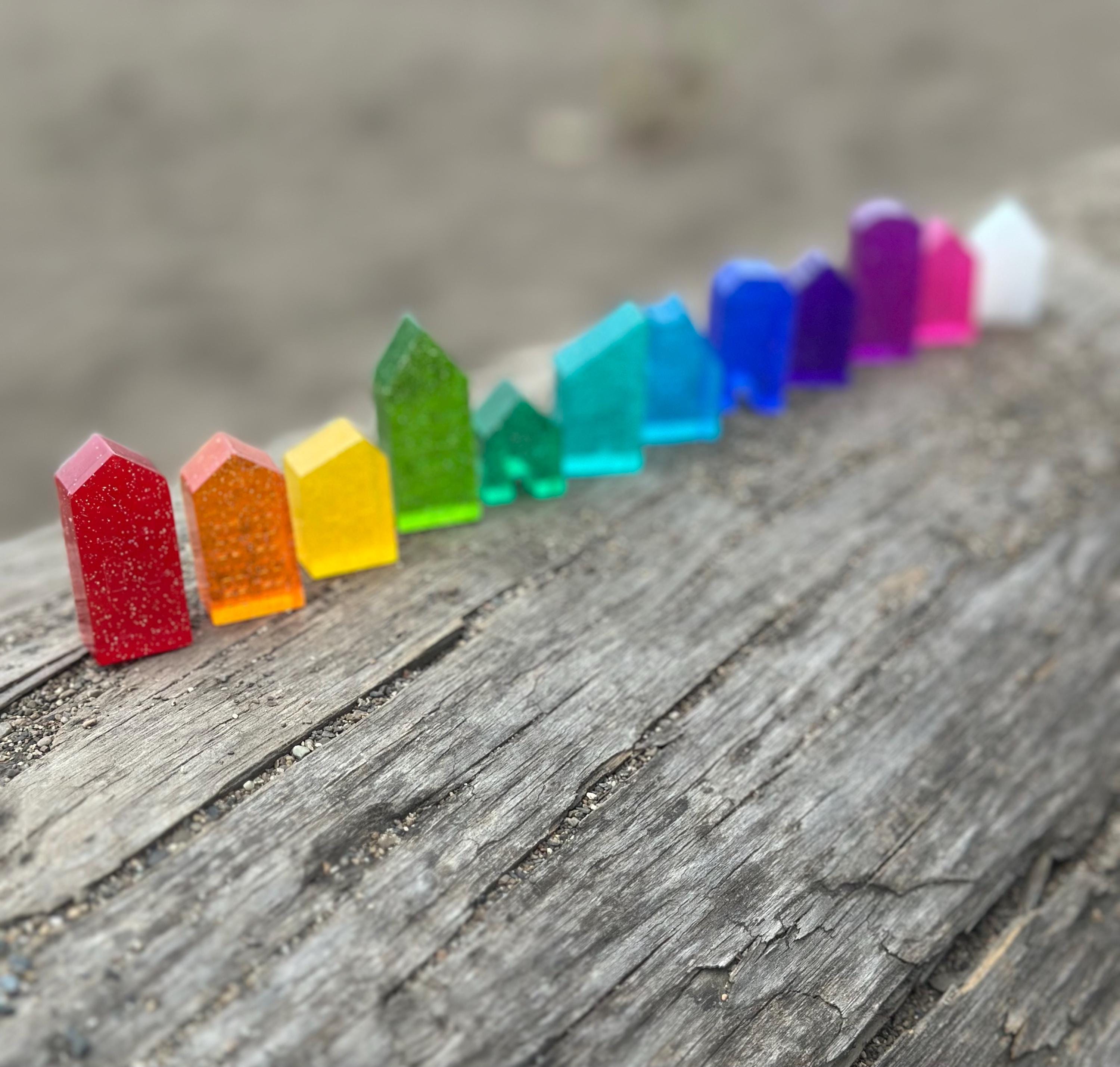 Bring a splash of color and creativity to your child’s sensory play with this set of 12 handmade, non-toxic resin houses! Perfect for sensory bins, loose parts play, or imaginative storytelling, these vibrant toys are designed to spark curiosity and support developmental learning.