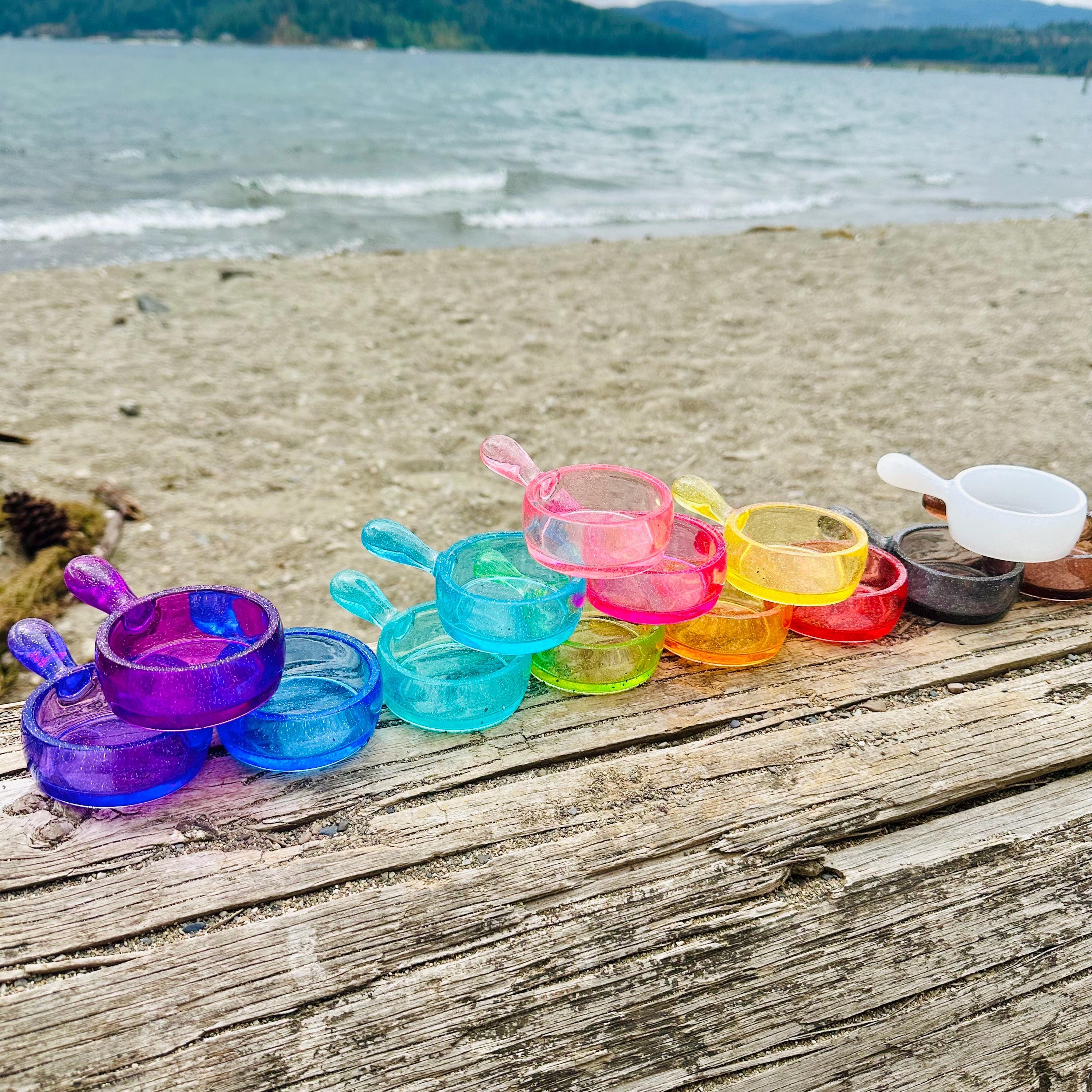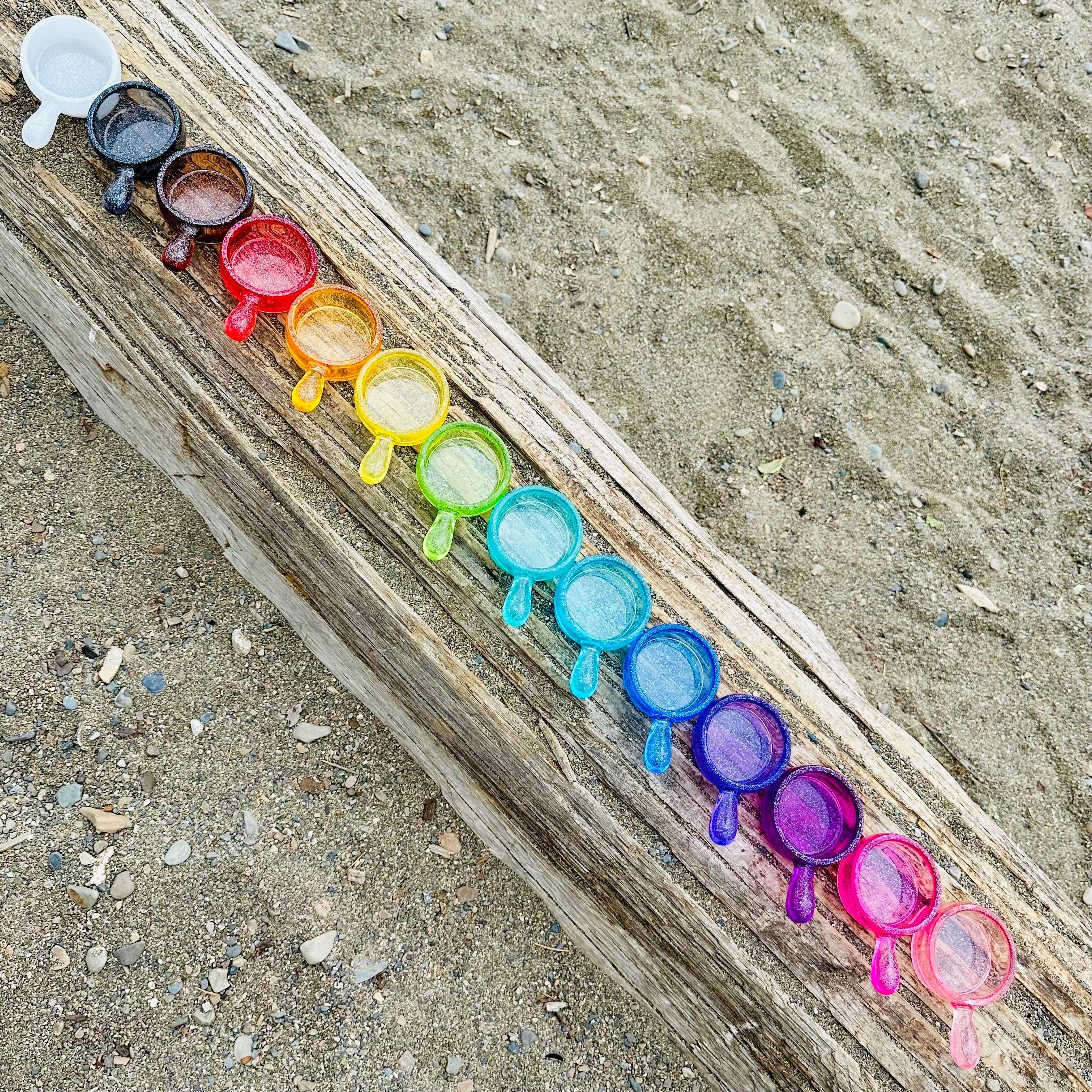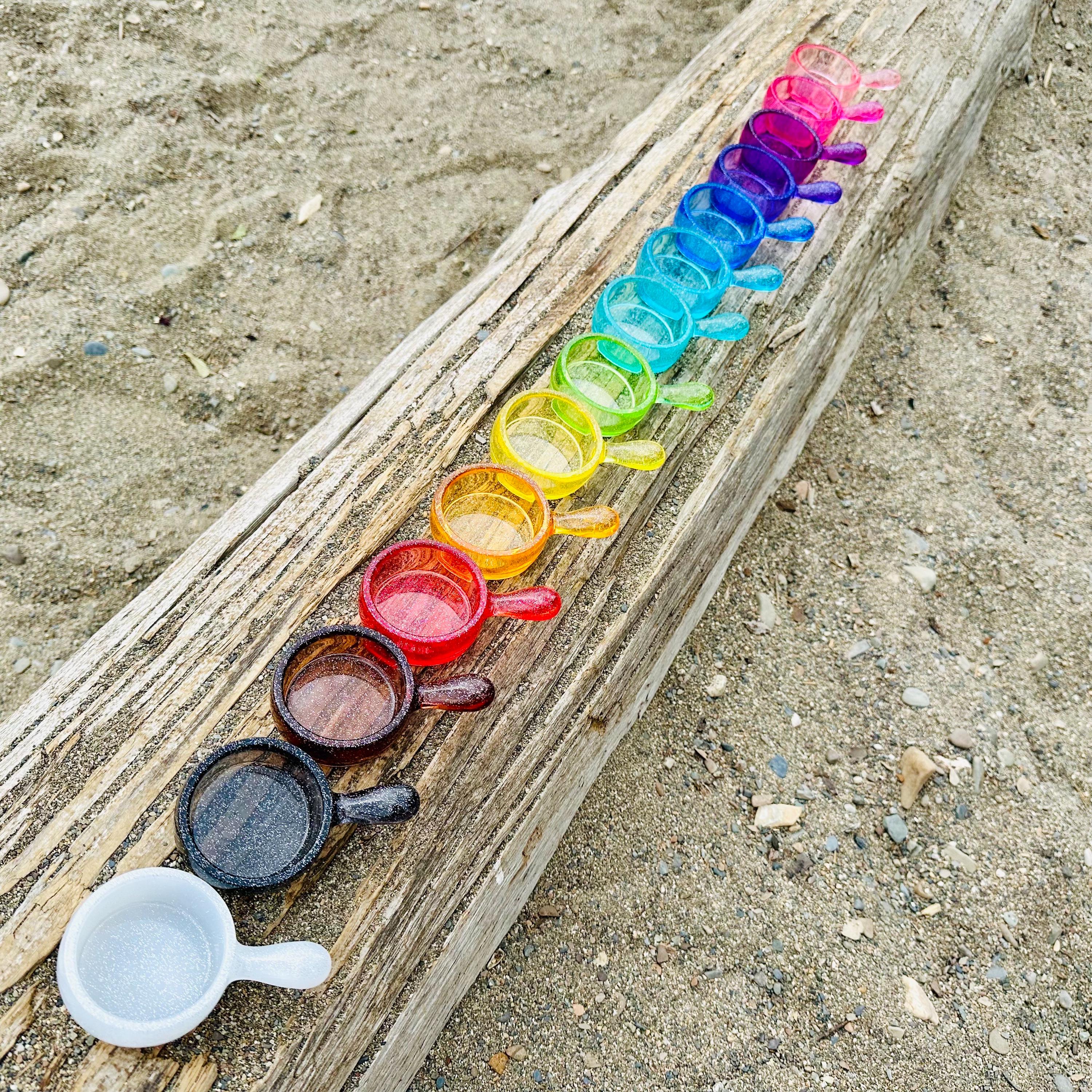 Make sensory play even more magical with our handmade glittery rainbow resin sensory scoops! Designed with curious little hands in mind, each scoop is crafted from food-safe, non-toxic resin and filled with eye-catching rainbow color and glittery detail!
