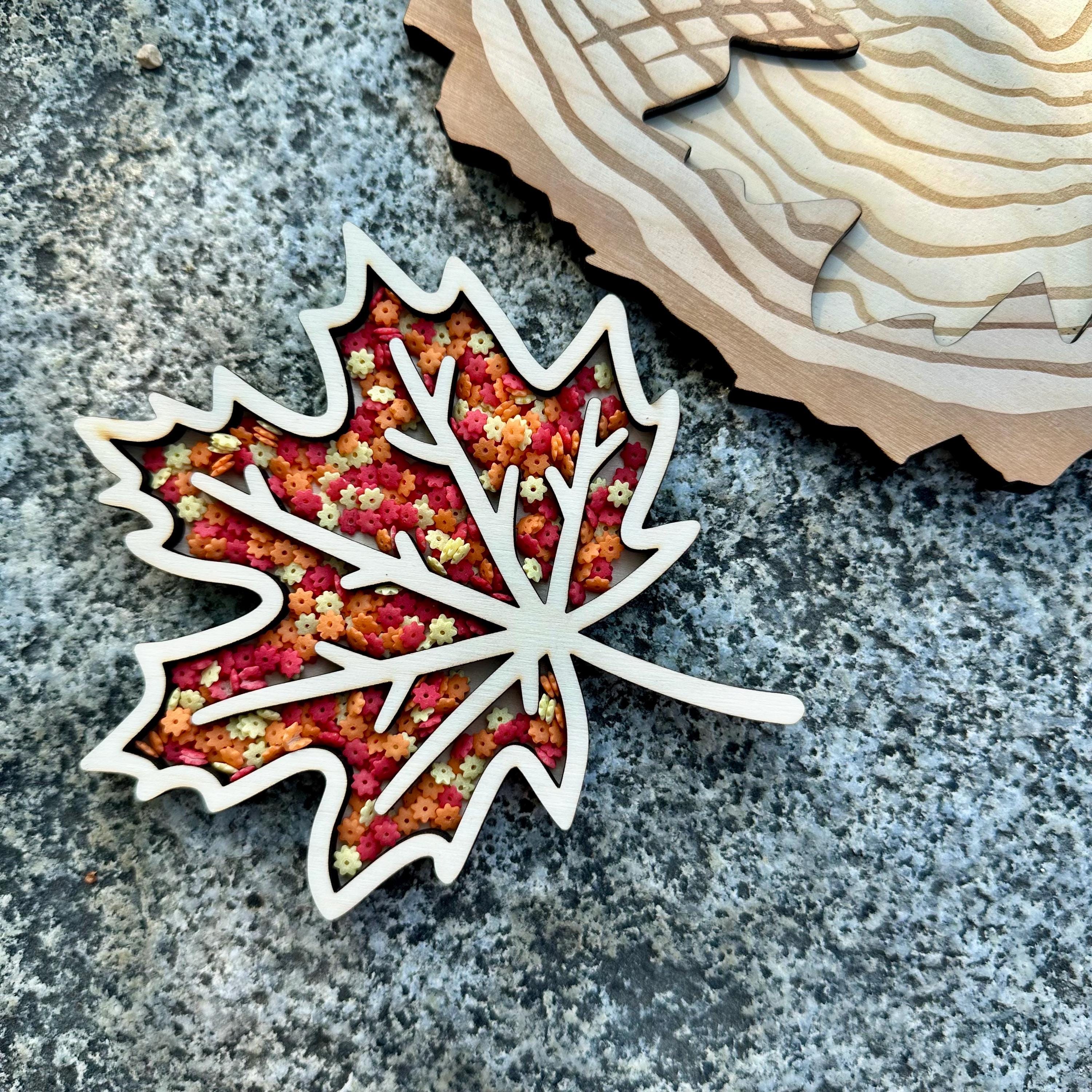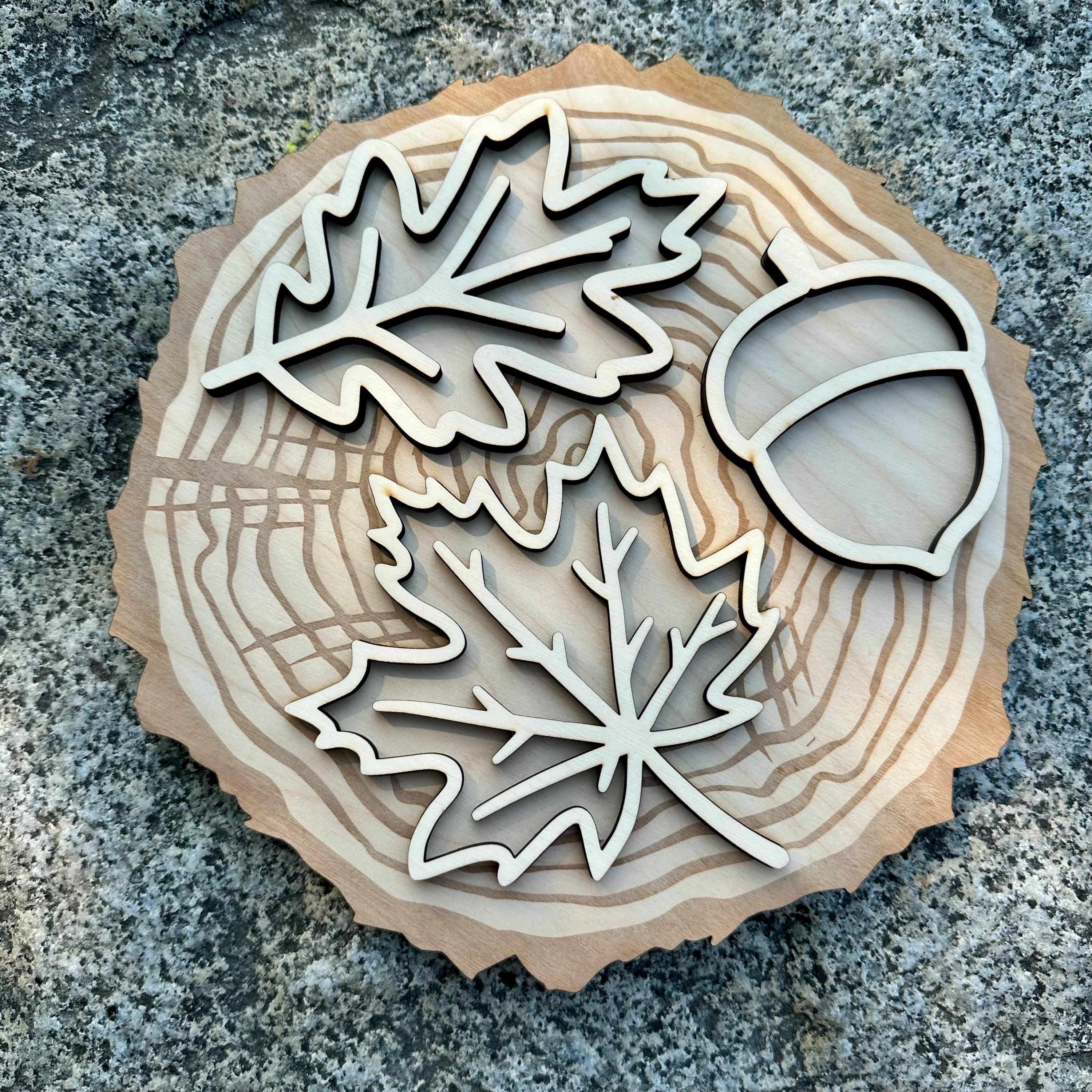 * 3 puzzle pieces (maple leaf, oak leaf, and acorn)