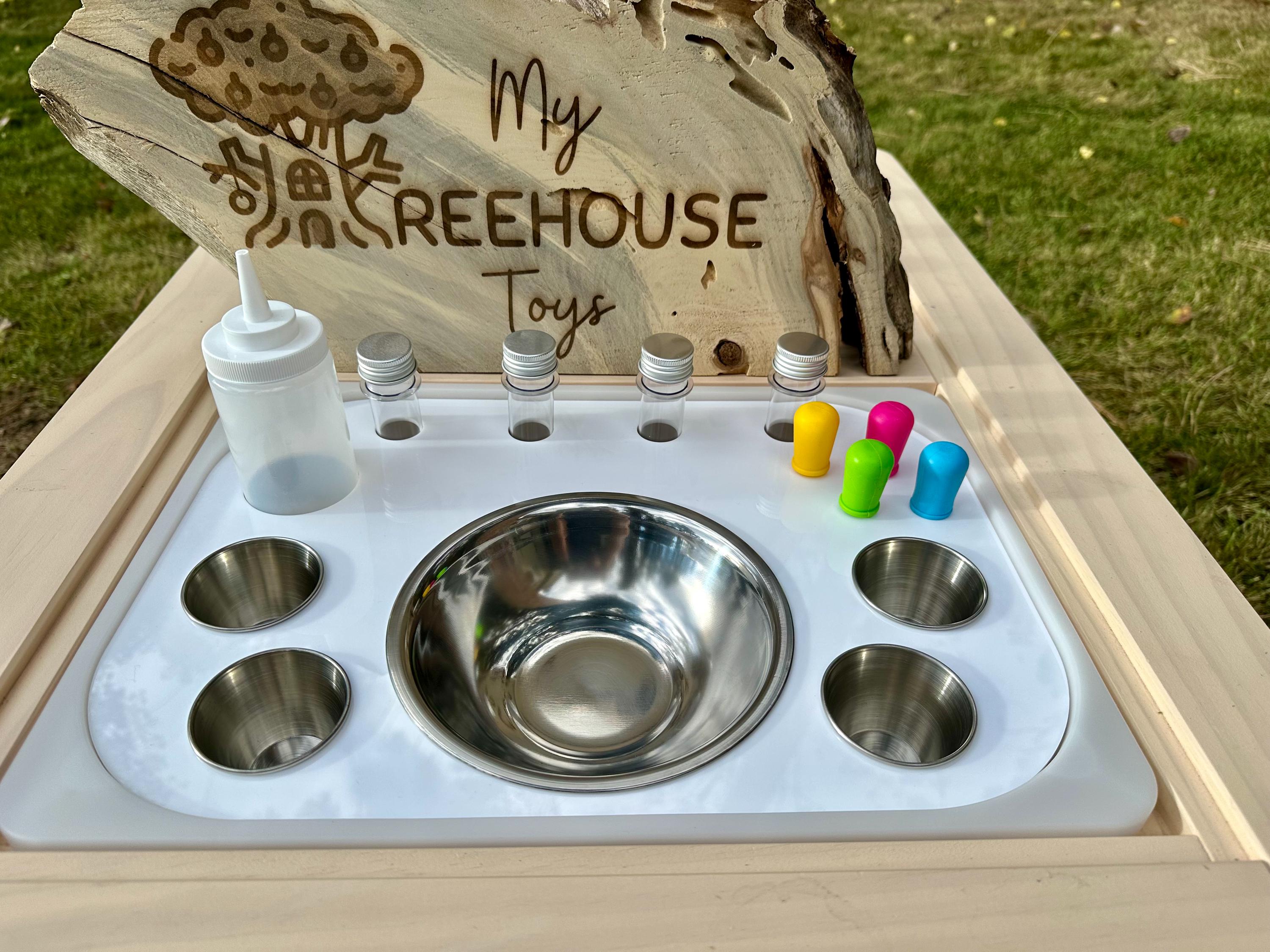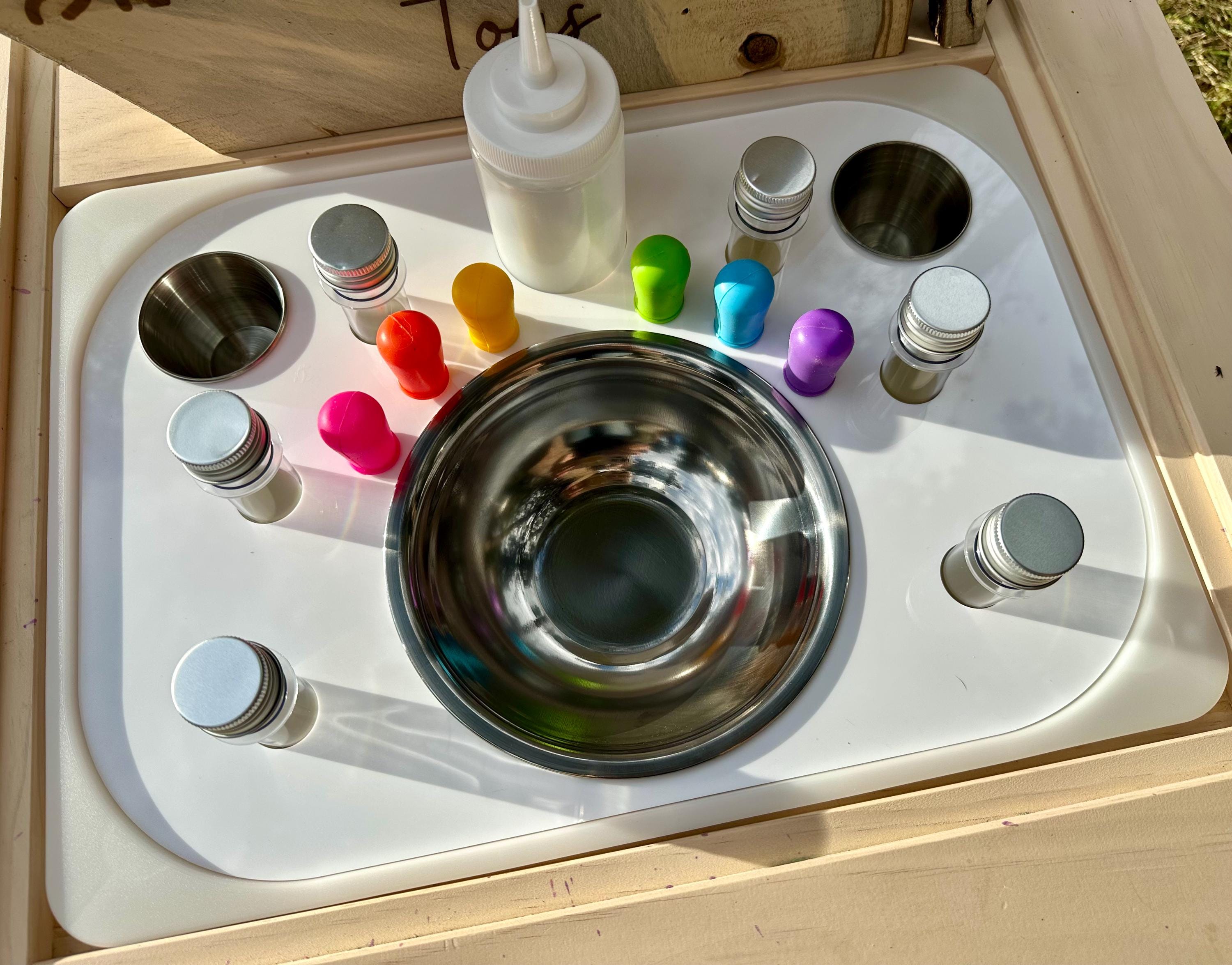 This large potion and science play insert is designed to spark curiosity and imagination. Perfect for color mixing, potion play, and STEM-inspired sensory fun.