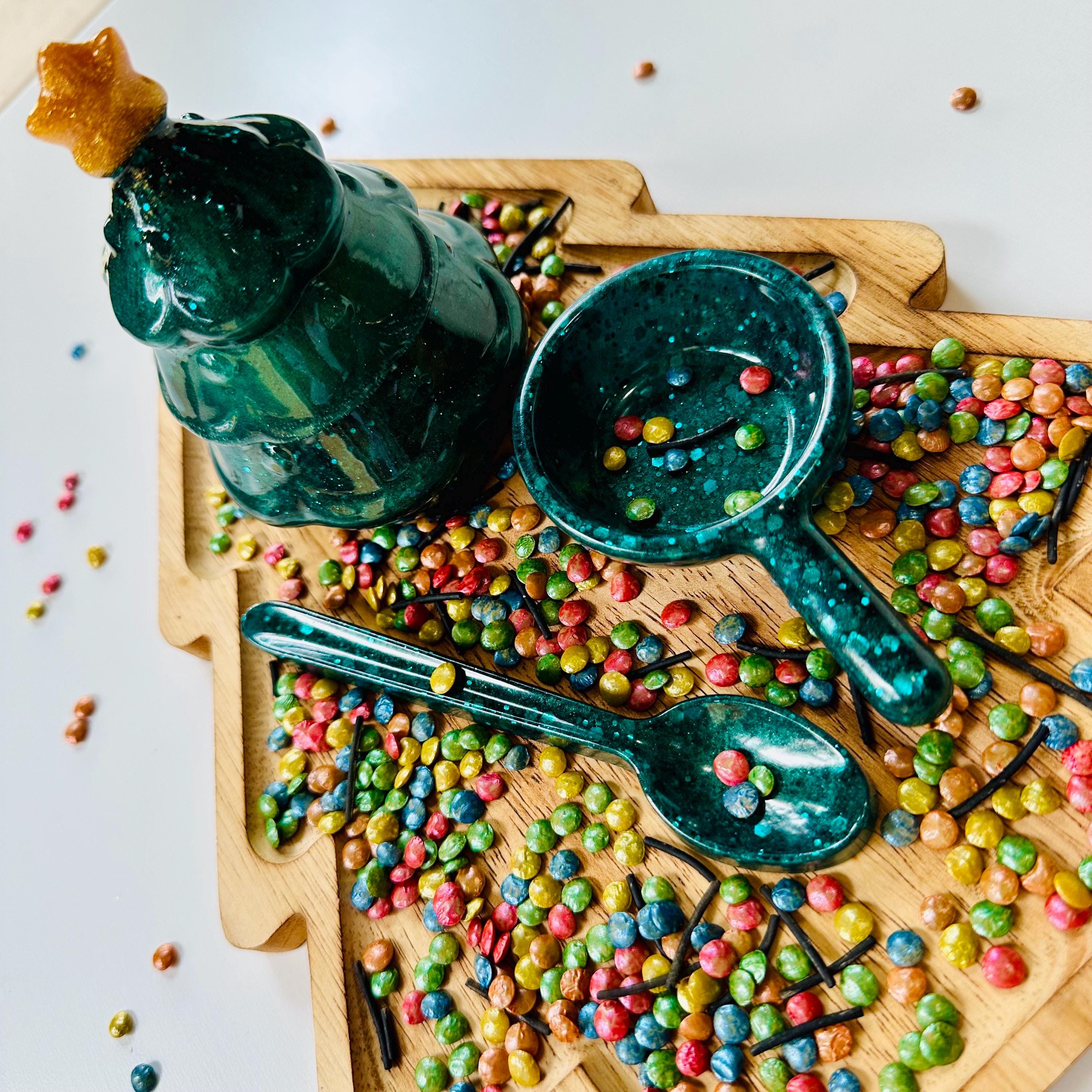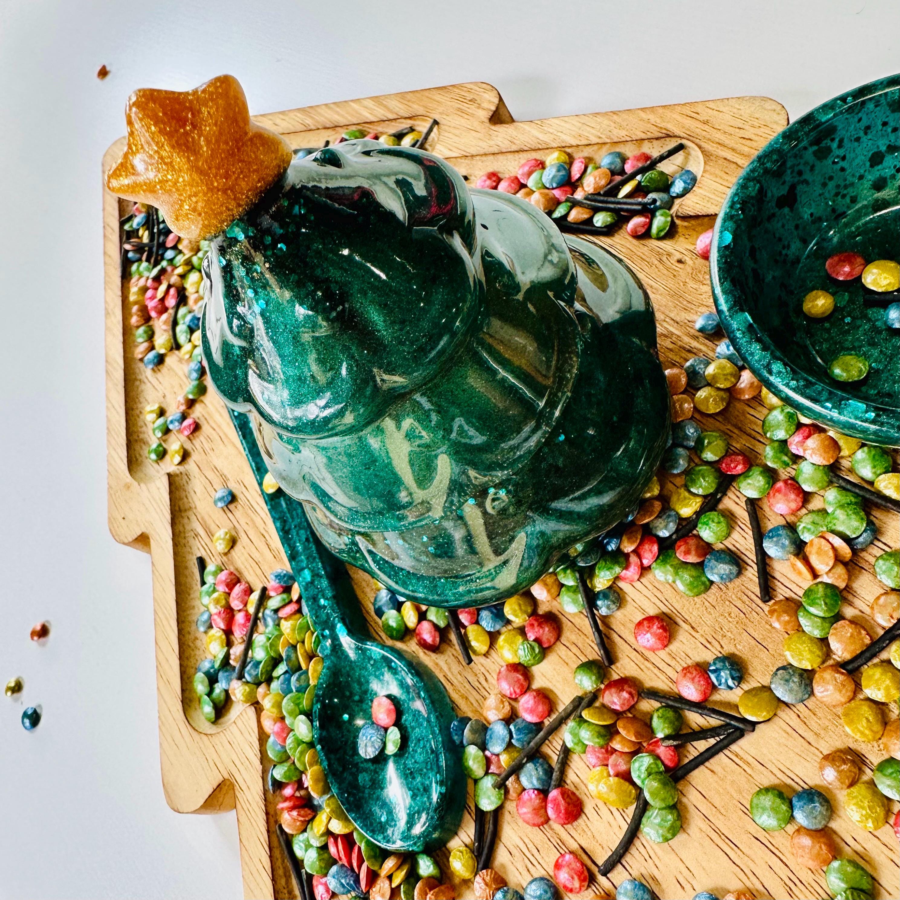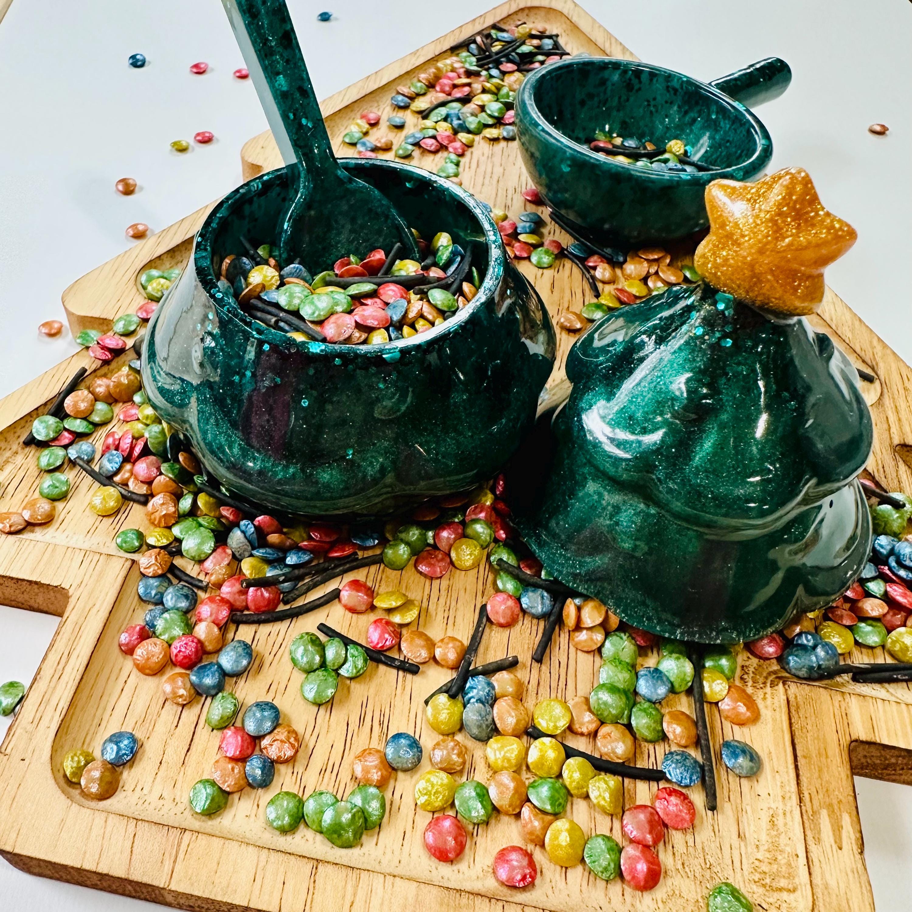 This resin Christmas Tree opens up to reveal a sweet little dish inside—perfect for holiday sensory play, festive potion mixing, small world storytelling, or hiding tiny treasures.