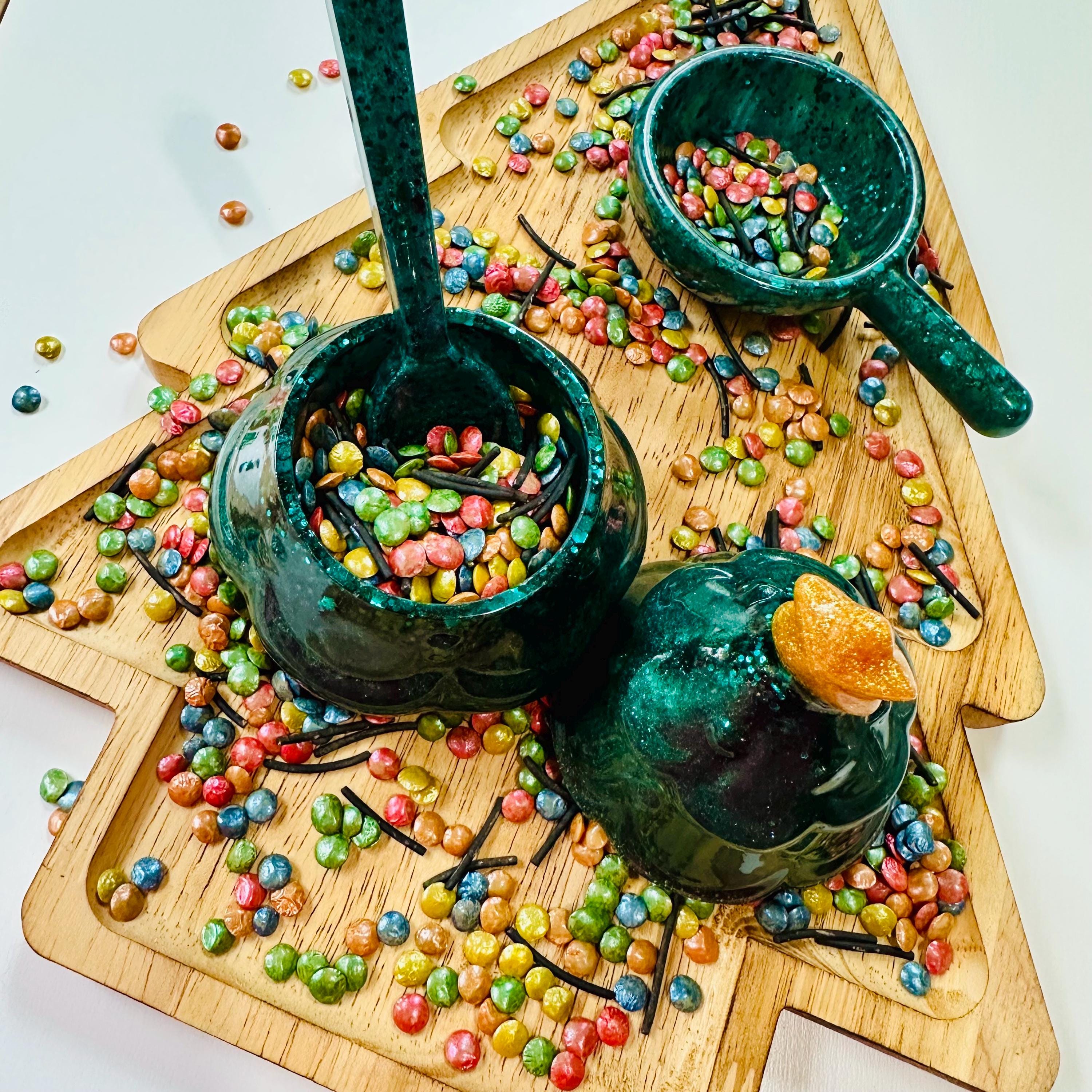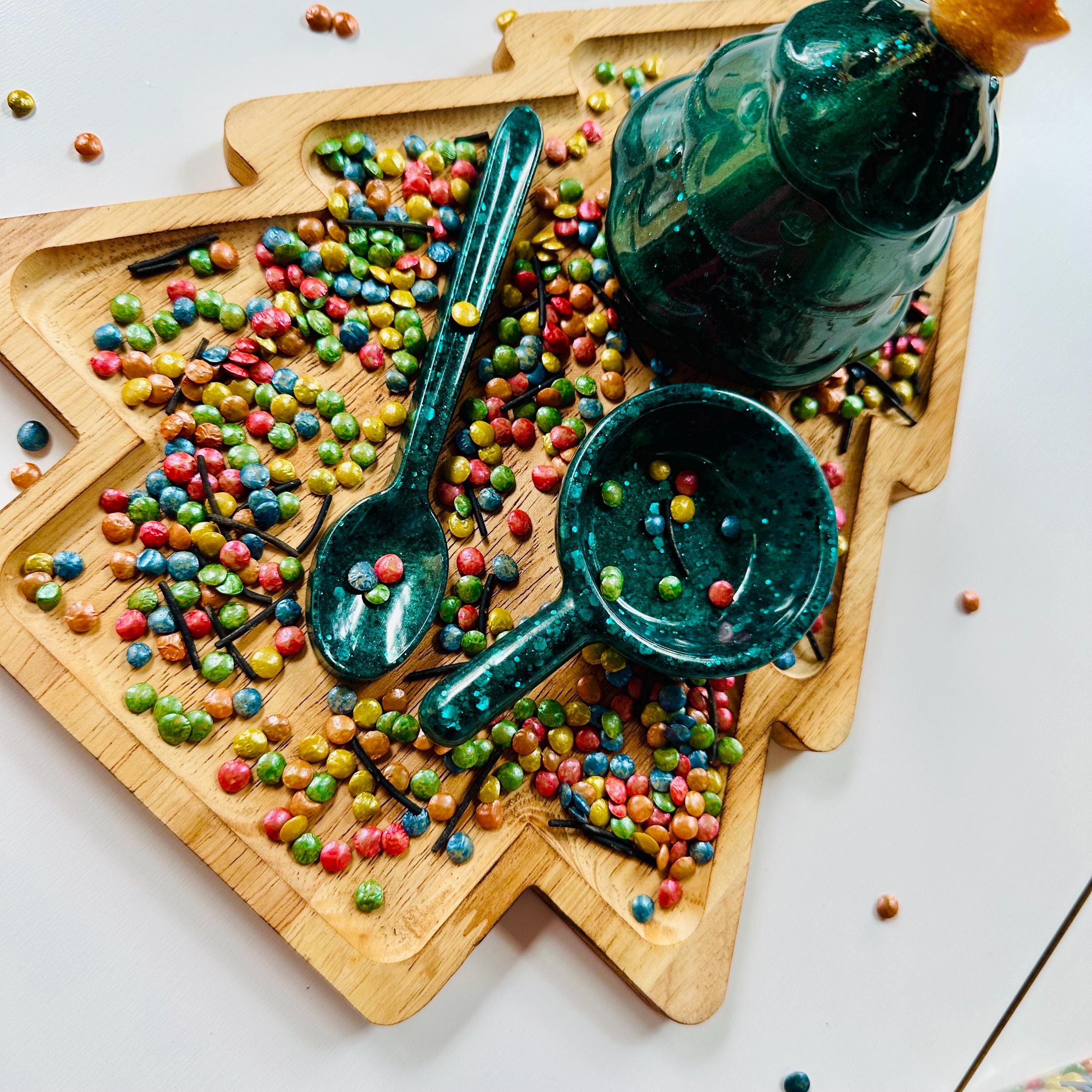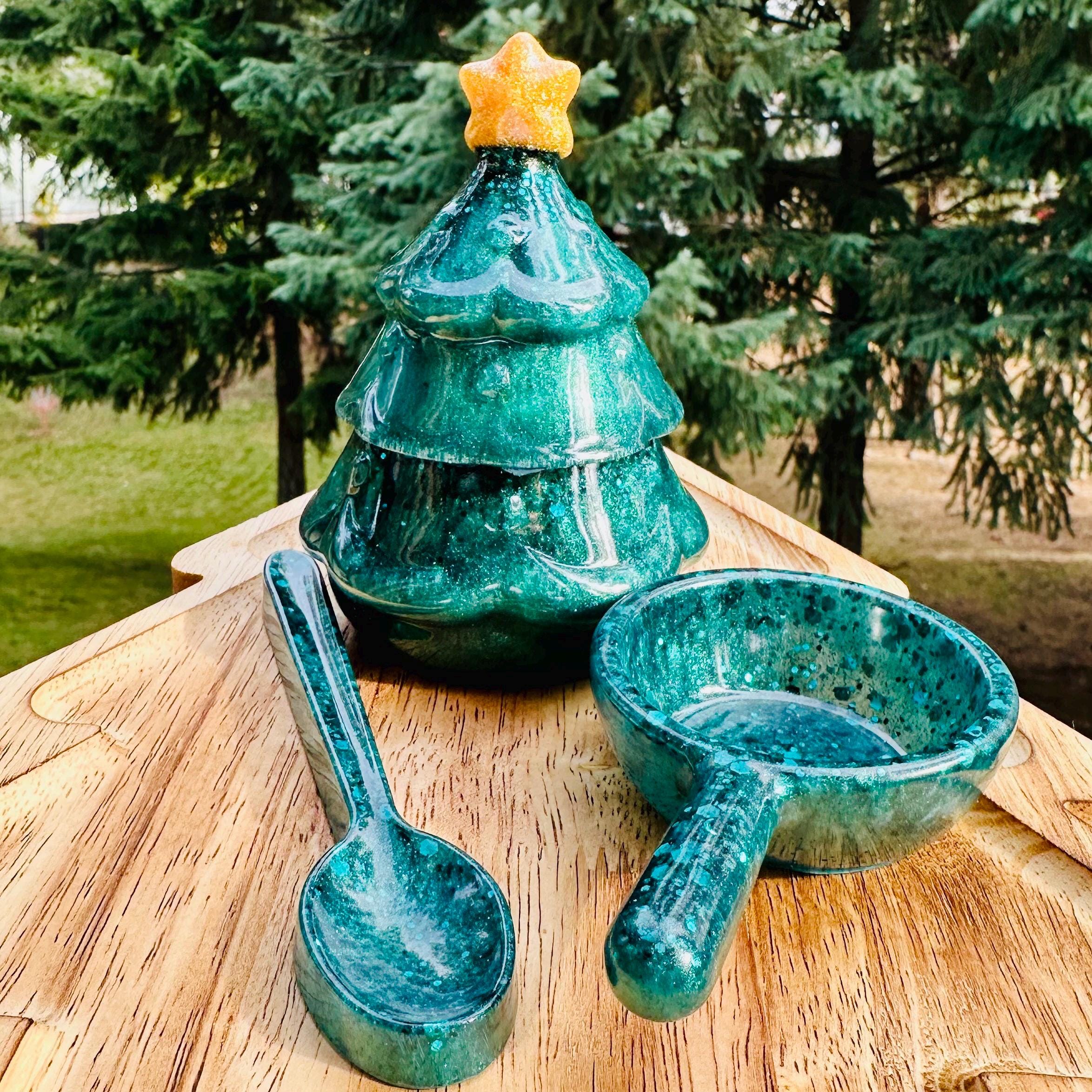 This resin Christmas Tree opens up to reveal a sweet little dish inside—perfect for holiday sensory play, festive potion mixing, small world storytelling, or hiding tiny treasures.